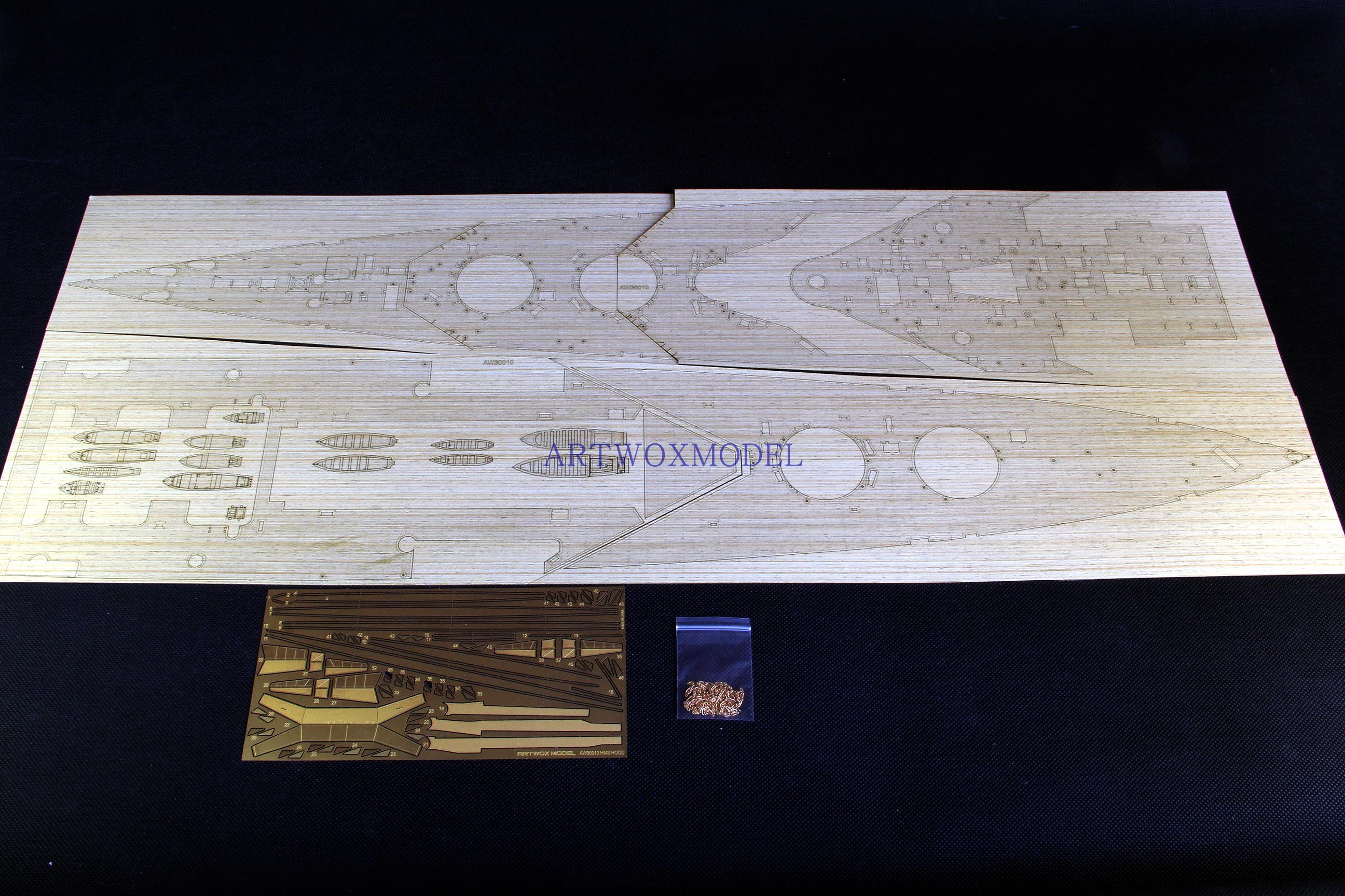 Artwox model wooden deck for Trumpeter 03710 British Royal Navy hood, battleship, wooden deck AW30010