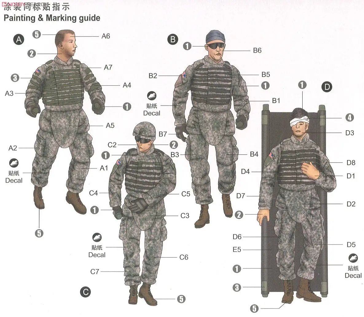 Trumpeter 1/35 scale soldier figure model 00430 Modern US Army soldiers stretcher group "medical evacuation"