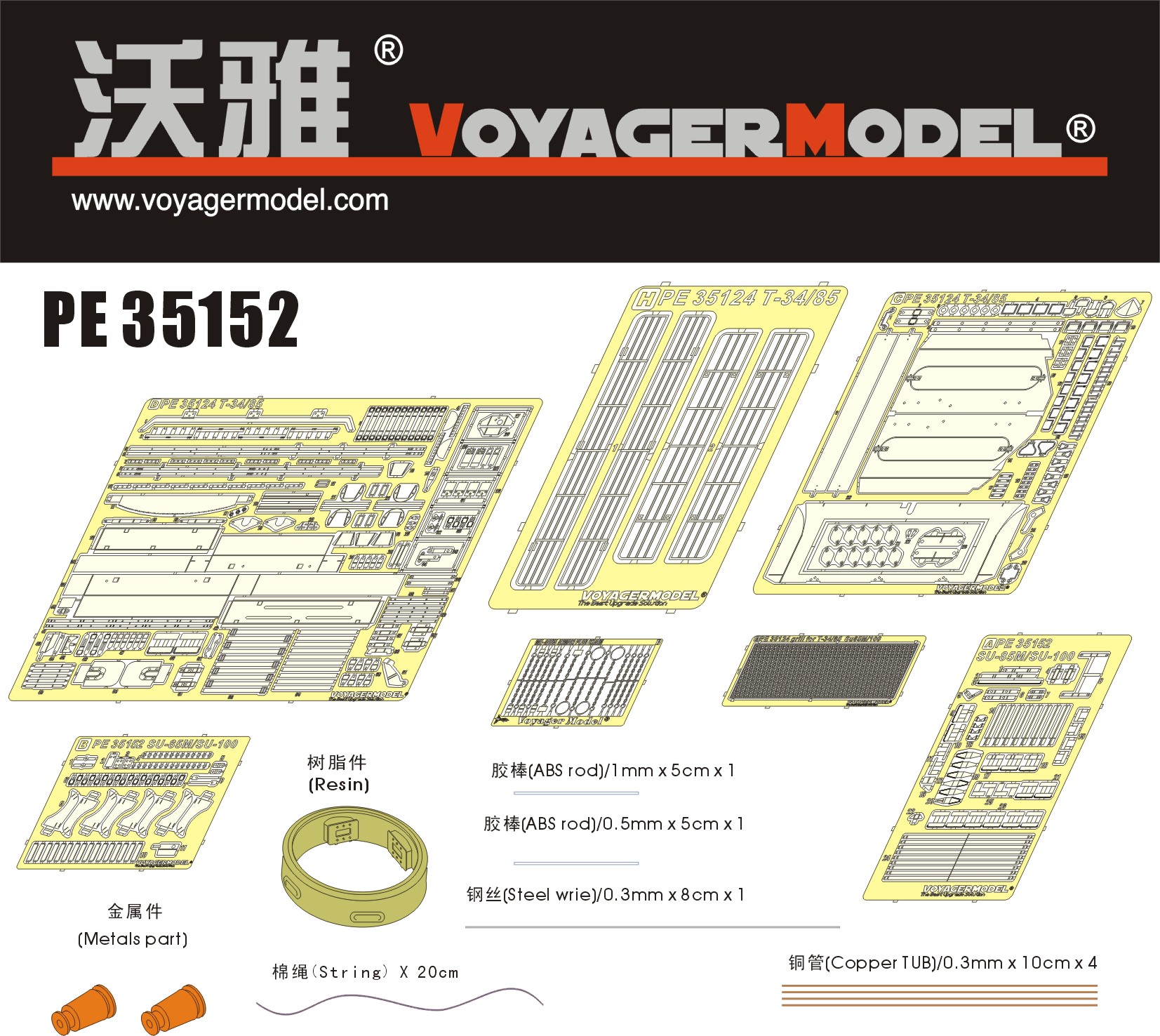 Voyager model metal etching sheet PE35152 SU-85M/SU-100 tank destroyer Upgrade Kit