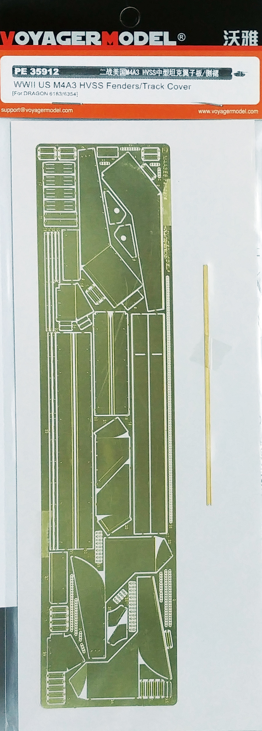 Voyager Model Metal Etching Sheet PE35912 World War II M4A3 HVSS medium tank fender / side skirt