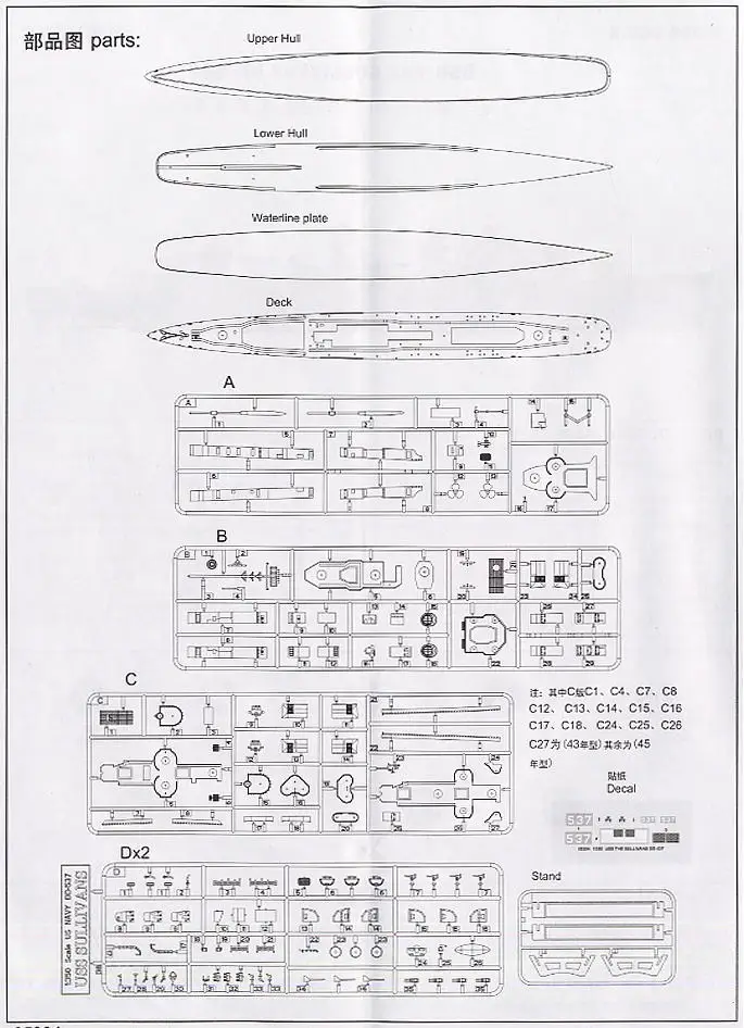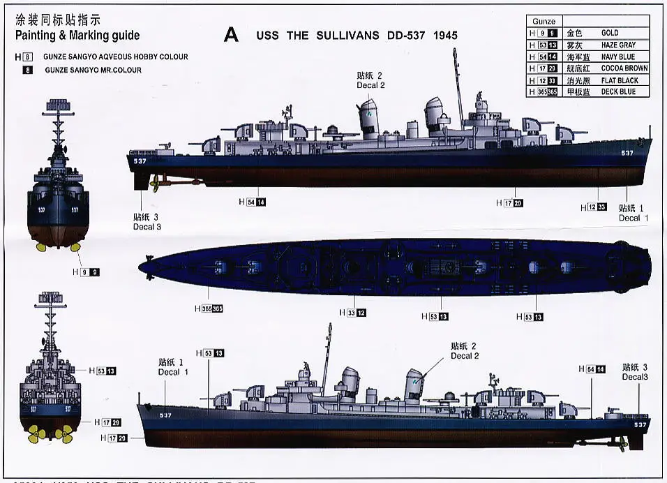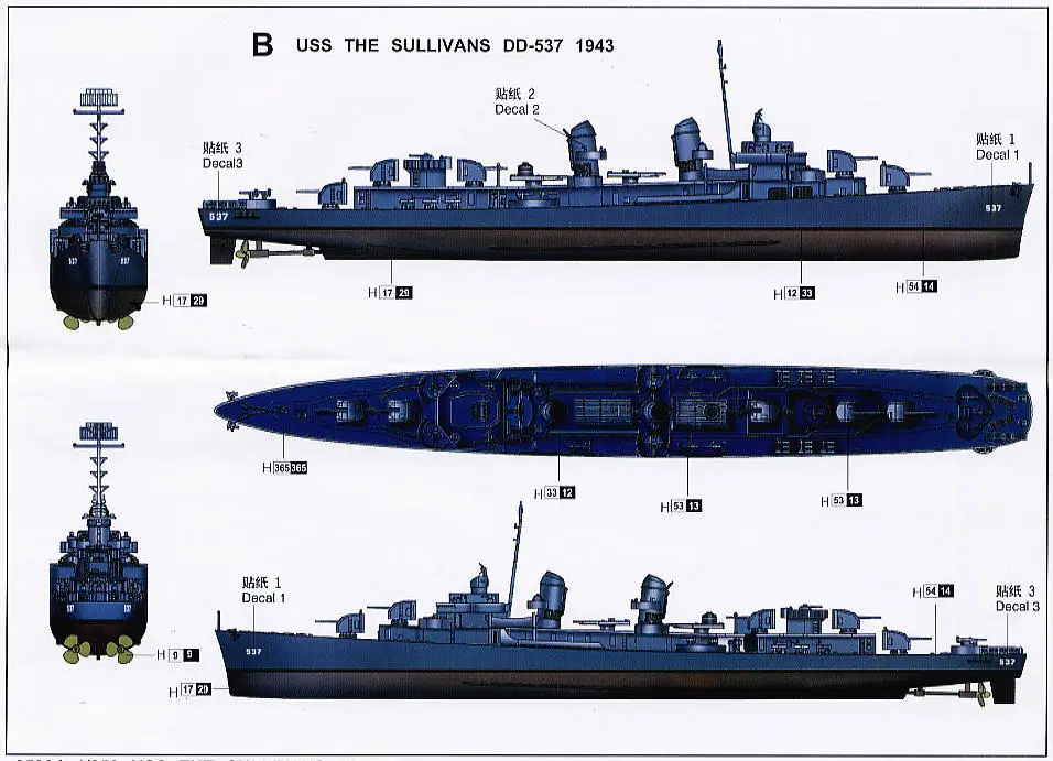 Trumpeter 1/350 scale model 05304 US Navy Fletcher level DD-537 & quot; Sullivan & quot; destroyer
